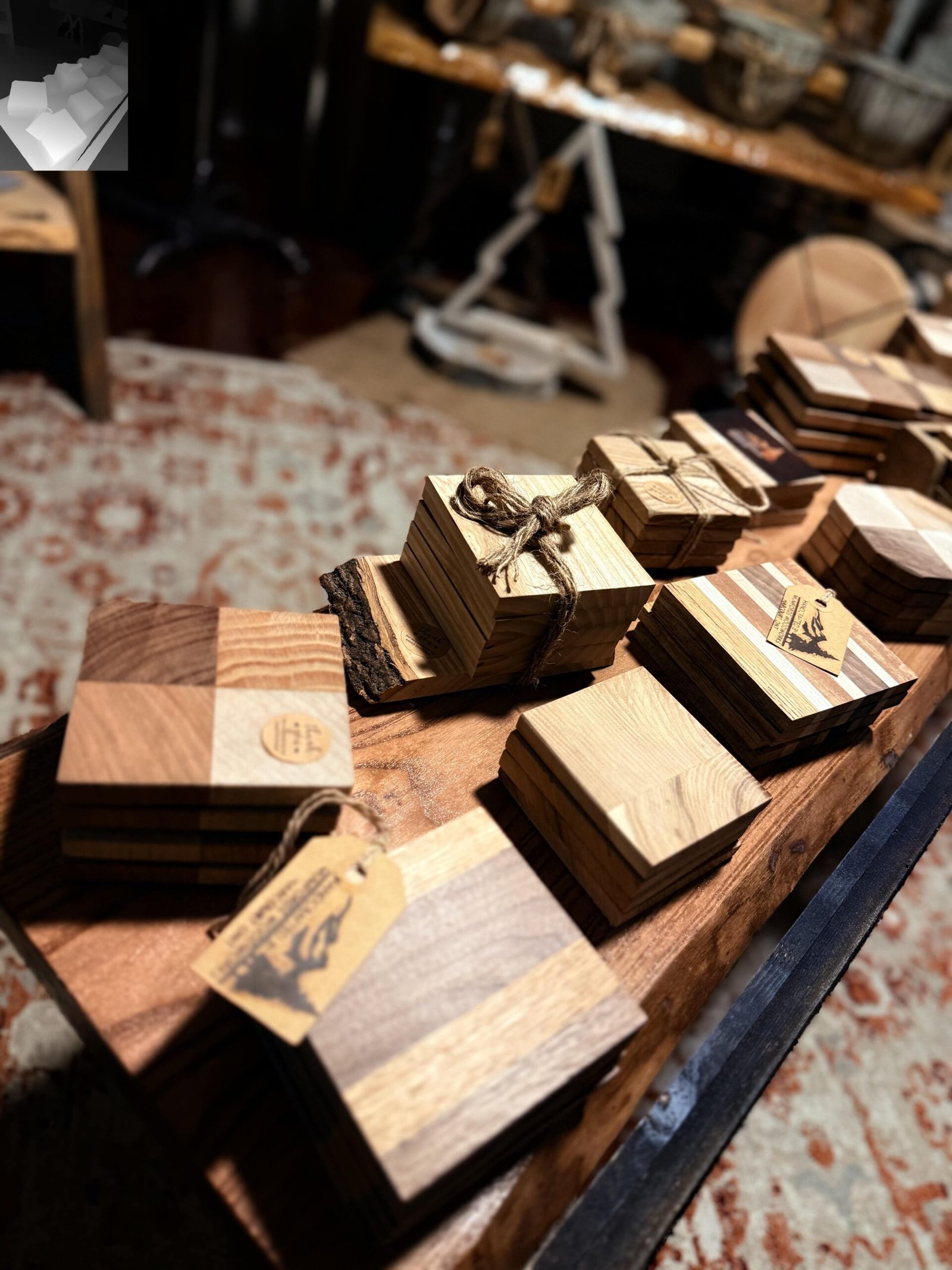 Handcrafted from premium East Coast hardwoods (cherry, walnut, maple & ambrosia maple), each coaster set celebrates the raw, untamed beauty of the Atlantic coastline. Live-edge details preserve the natural contours of the wood, while stunning custom epoxy resin inlays in deep ocean blues, stormy greys, and sea-foam greens capture the wild virtue of crashing waves, misty headlands, and windswept shores.